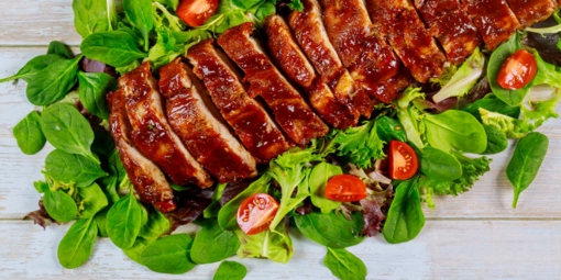 Укладаємо інгридієнти слоями, змащуємо заправкою: язик, серце, грибы, огірок, сир.