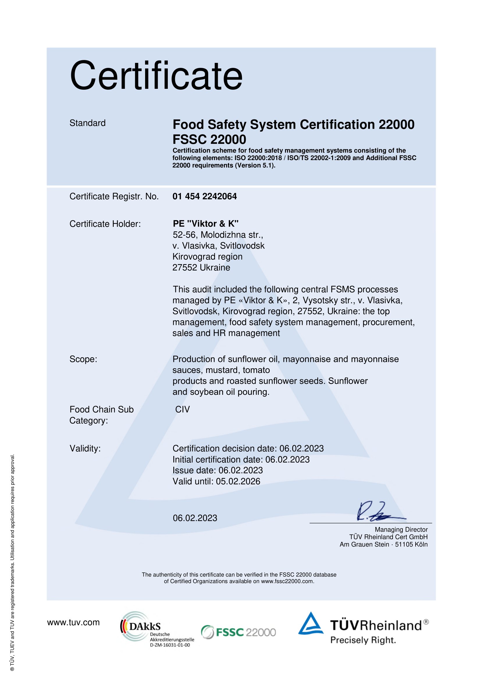 - Зареєстрована торгова марка «Королівський смак», під якою виготовляється продукція підприємства «Віктор і К».