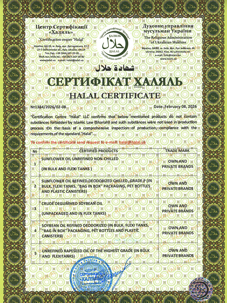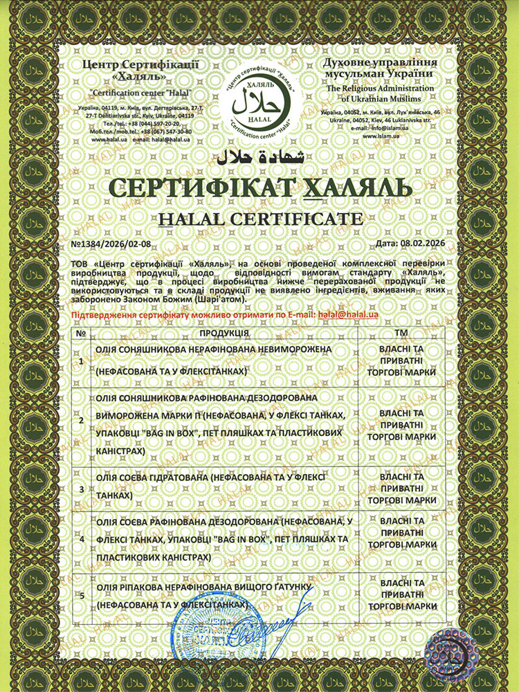 СЕРТИФІКАТ "ХАЛЯЛЬ" укр.