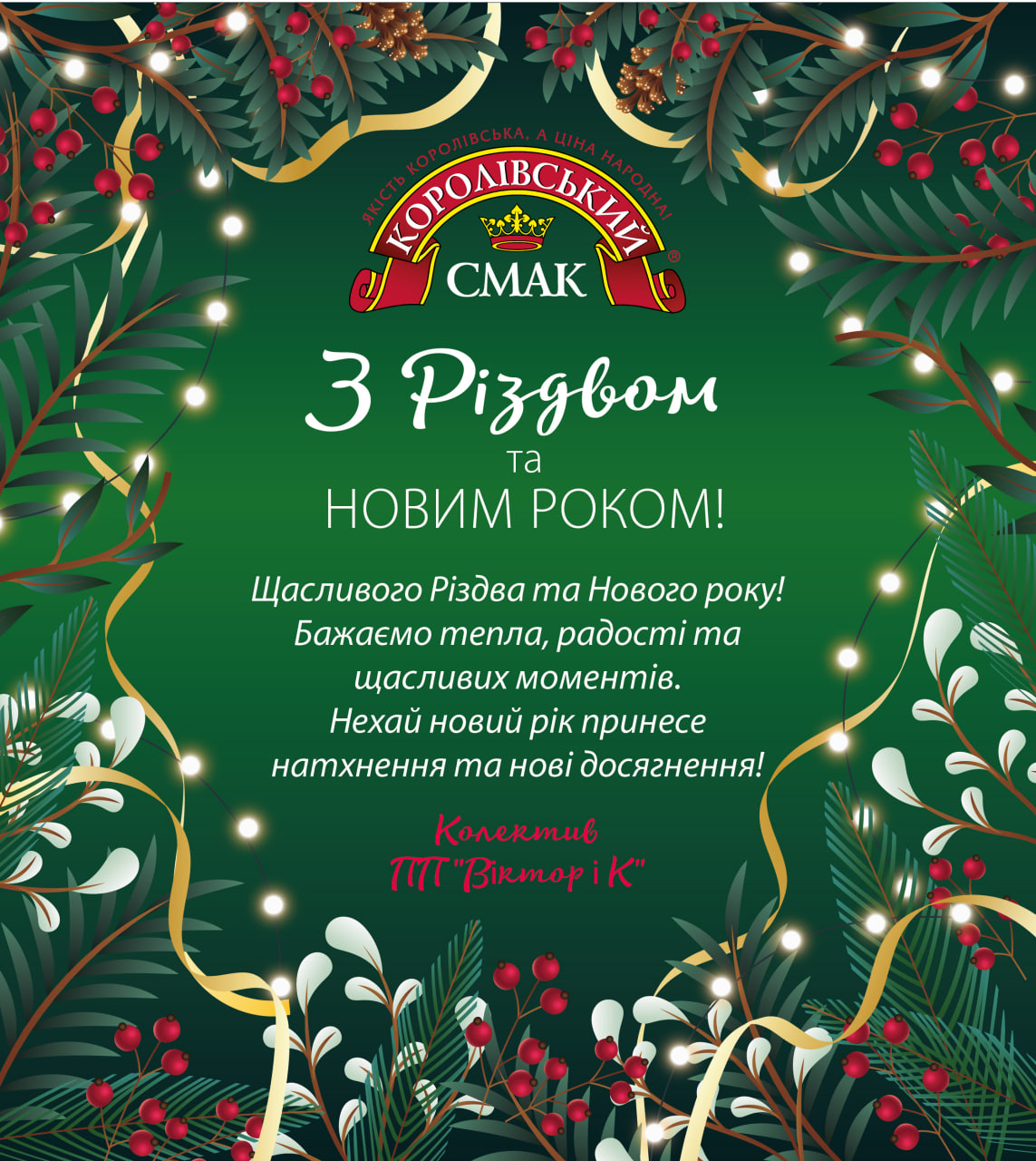 Ми бажаємо вам міцного здоров’я, невичерпної енергії та затишних вечорів у колі найрідніших. Нехай за вашим святковим столом завжди панує злагода, любов та незмінний «Королівський смак».